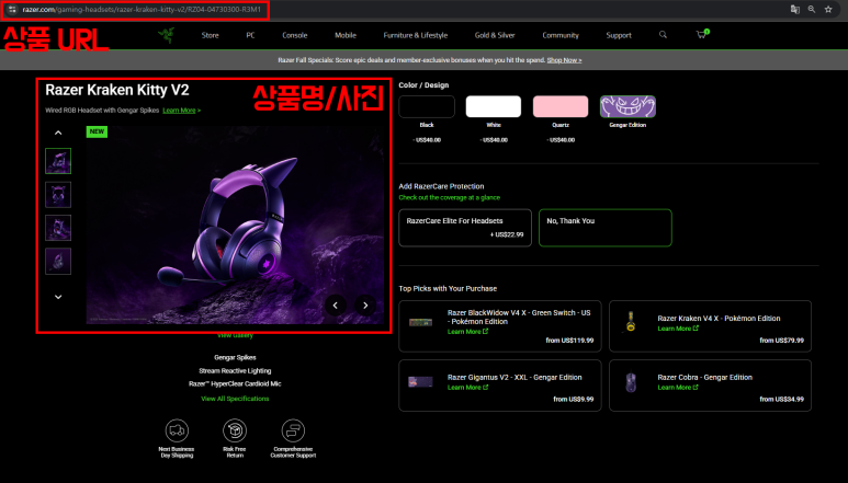 레이저 미국 공홈은 현지 배송비가 있어요