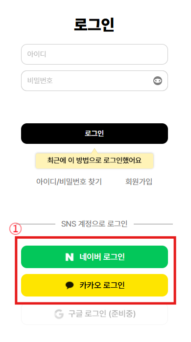*네이버나 카카오로 로그인하면